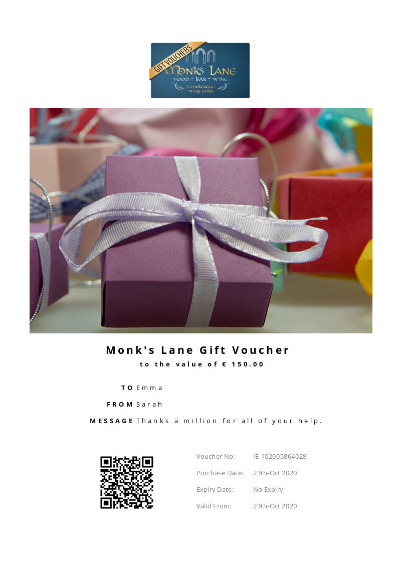 Monks Lane allows you to purchase instantly printable gift vouchers, special offers and tickets using the Voucher Connect platform.